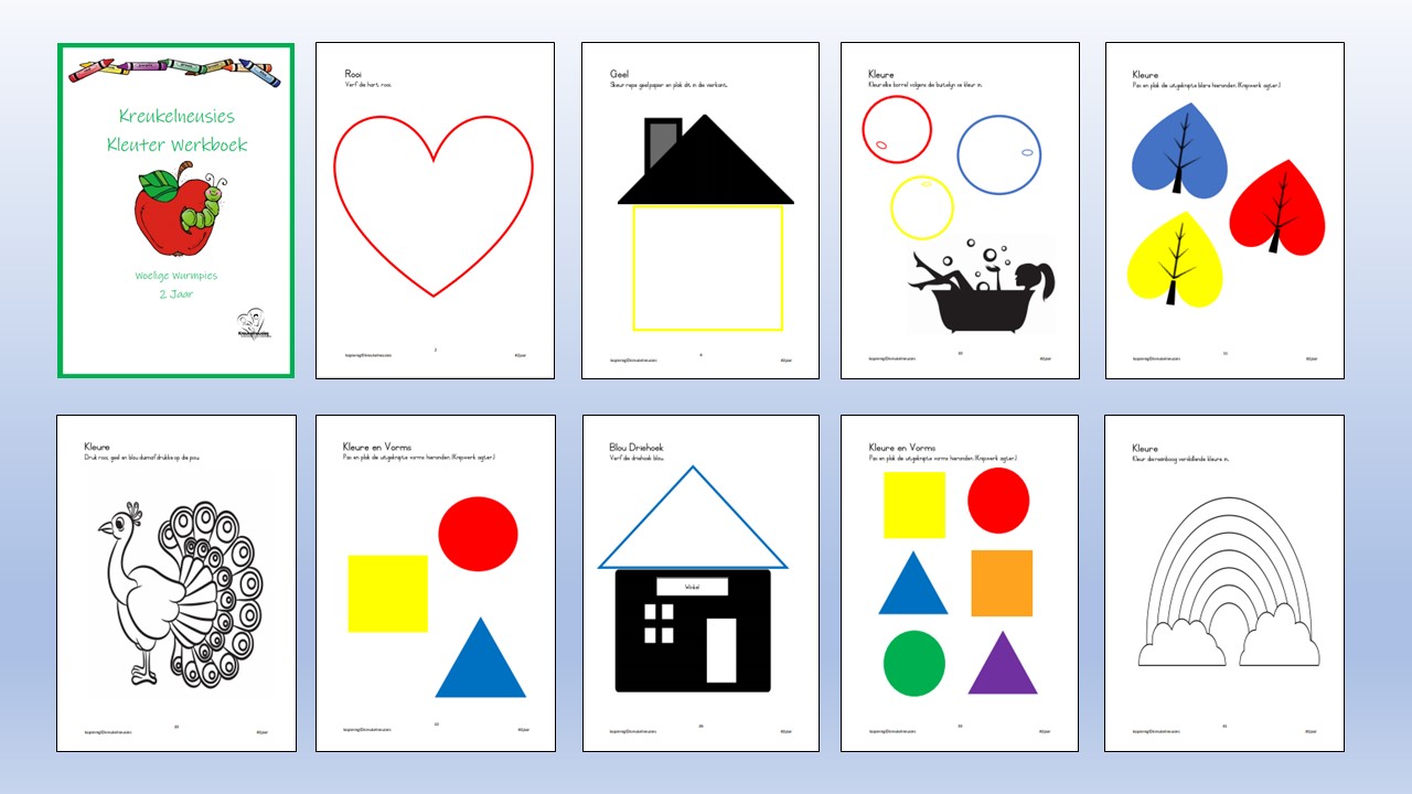 Kleur- en vormherkenning ontwikkel woordeskat en die vermoë om abstrak te dink. Dit help ook om letters en syfers te herken om te kan skryf, lees en somme maak.