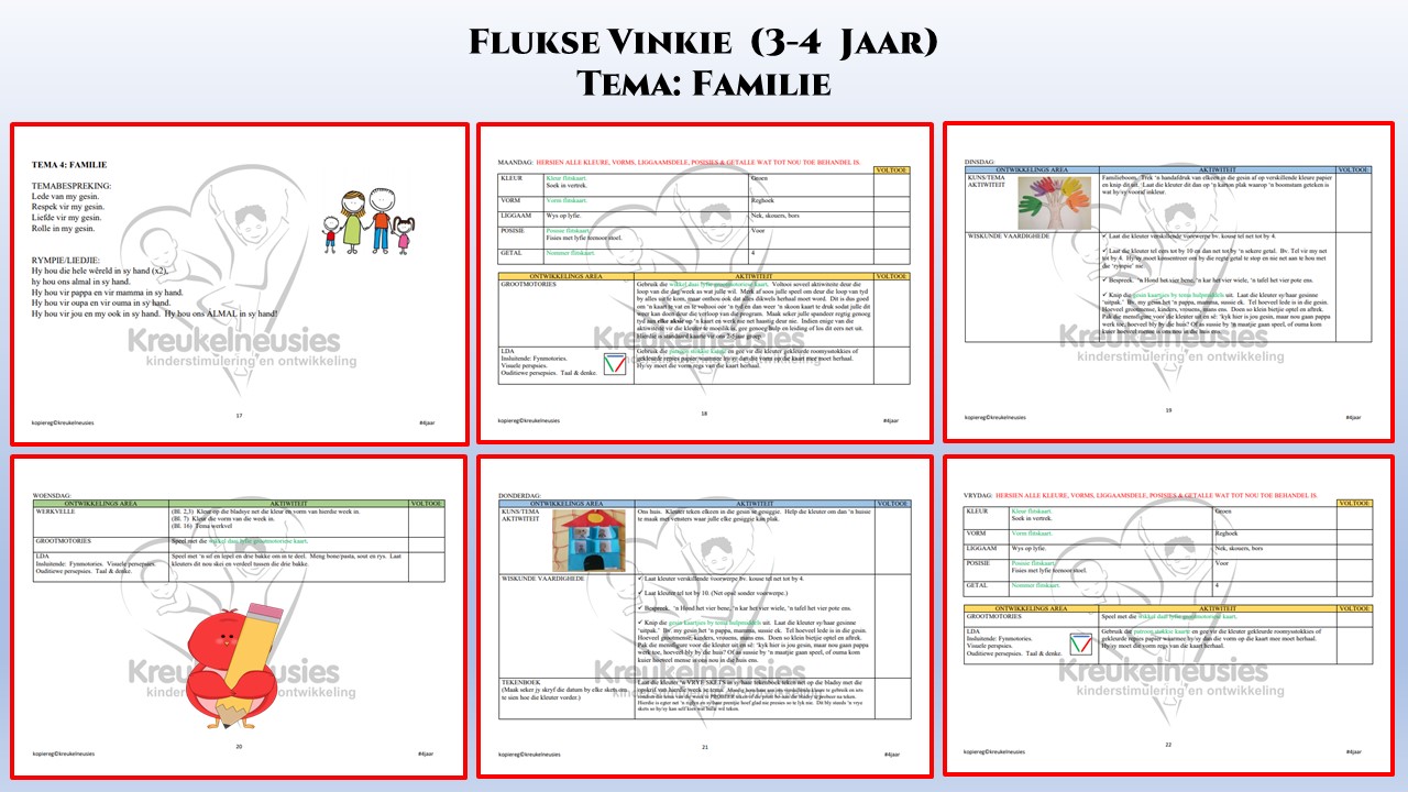 - Kleuter werkvelle volgens lesbeplannings vir die 5 weke.
